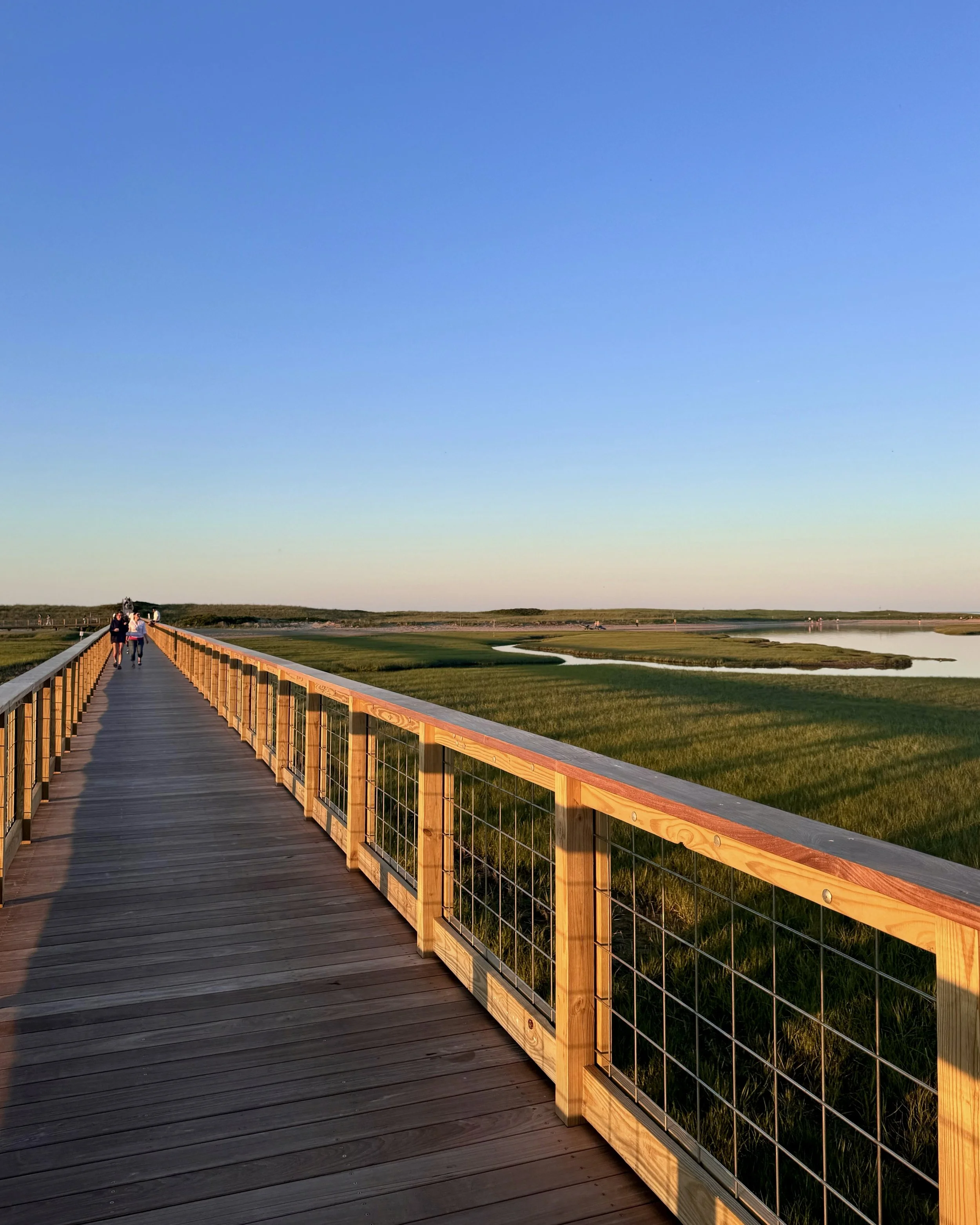 Our next destination is a Massachusetts and New England icon: the Sandwich, MA Boardwalk. Stretching 1350 feet, the Sandwich Boardwalk was originally built in 1875 and was rebuilt twice: in 1992 after being destroyed by Hurricane Bob and then again in early 2024 after a January 2022 Nor’easter destroyed a large section of it.