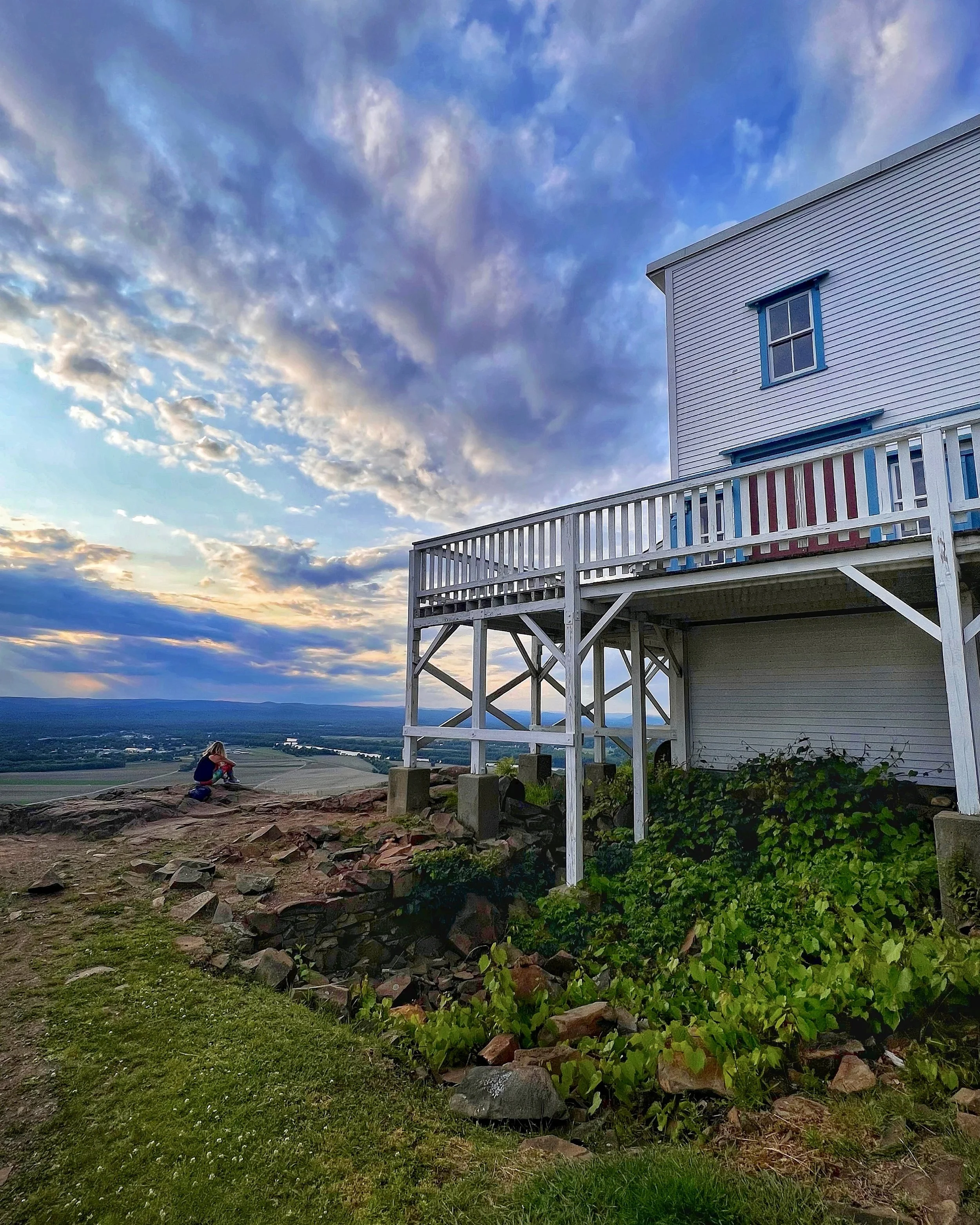 Watching the sunset horizon over the Connecticut River Valley standing on the Mount Holyoke Summit House deck.