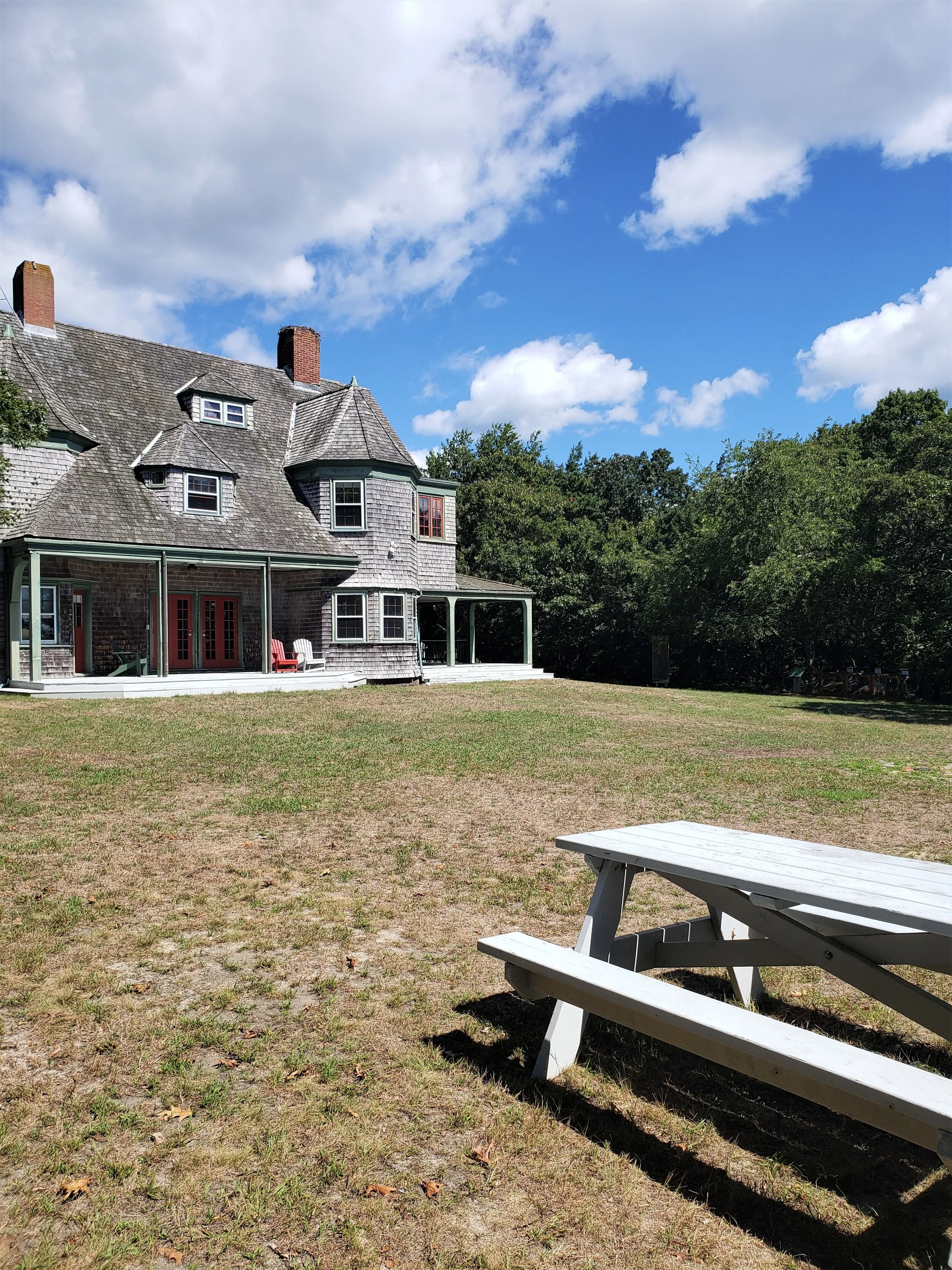 After parking, simply walk towards and past the visitor center to view the bay from above the shoreline. Waquoit Bay landscape and the sailboats can be seen at the edge of the property looking through the trees.